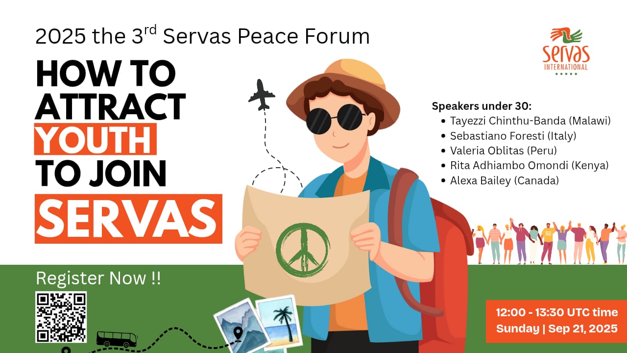 We warmly invite you to the upcoming Servas Peace Forum on Sep. 21, the International Peace Day, where the young Servas members under 30 from the world will present: