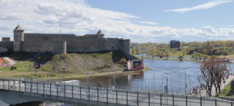 By chance, we arrived in Narva on Victory in Europe (VE) Day. The town of Narva is separated from Ivangorod in Russia by the river Narva. There are large forts on both sides. The bridge across the river is a border crossing, open only to pedestrians. On the Russian side of the river there was a large stage with music, speeches and giant screens showing war movies and parades; matched by a large banner of ‘Putler’, Putin with a Hitler moustache, on the Estonian side. Estonia does not celebrate the end of World War 2 as it was immediately followed by the Soviet occupation which only ended in 1991. We peacefully watched the celebrations across the river along with many local people.
