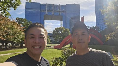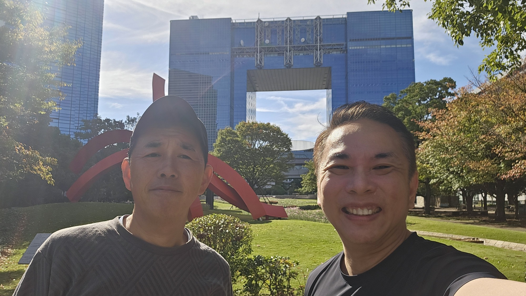 Photo taken with Taka at the Smile Garden with the Telecom Center Building in background. Ariake area is made up of many islands with nice parks